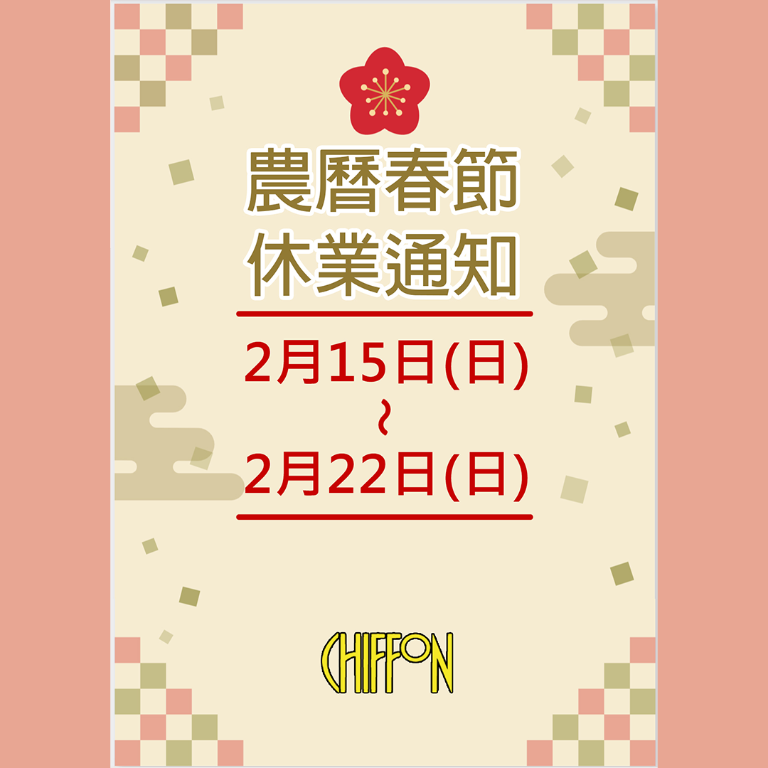 2/15(日)~2/22(日) 春節公休