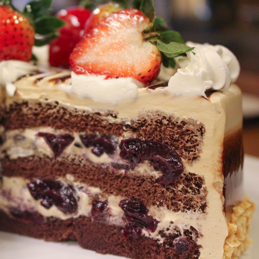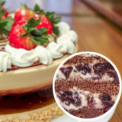 巧克力口味的戚風蛋糕體,加上外層佈滿獨具特色的咖啡口味鮮奶油,呈現香醇濃郁又滑順的特殊口味。