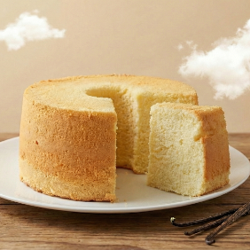 戚風蛋糕口感鬆軟,採用蛋黃與蛋白分蛋打發技巧,使組織能包覆充足空氣,口感鬆軟卻不乾澀。
