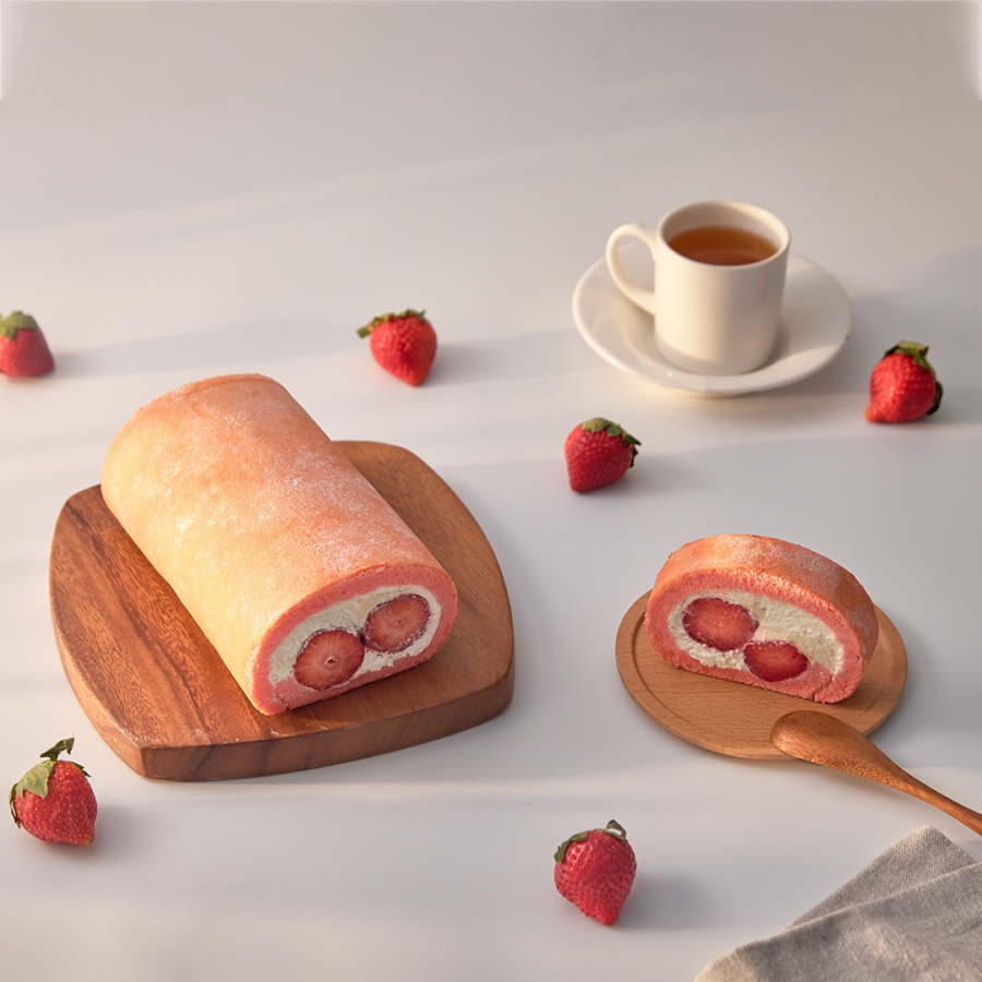 綿密的草莓蛋糕體溶入草莓鮮果泥香氣, 包覆著如雲朵般輕盈、香濃卻不甜膩的法國鮮奶油,再加上畫龍點睛的手工製卡士達醬, 大方放入顆顆碩大飽滿、多汁鮮甜的大湖草莓