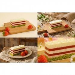 柳橙起司引領柑橘香,交織莓果凍與白巧克力慕斯的酸甜,底蘊抹茶蛋糕茶韻回甘。層次豐富,譜出草莓季專屬的多重享受!